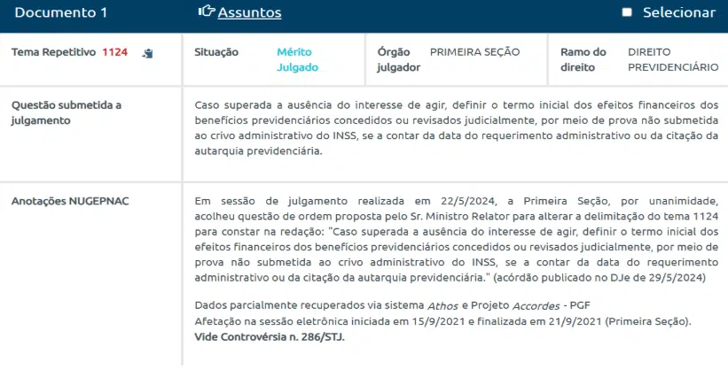 No julgamento do Tema 1124 STJ, a Primeira Seção decidiu que ações judiciais que pleiteiam benefícios previdenciários sem a apresentação prévia dos documentos necessários ao INSS devem ser extintas.
