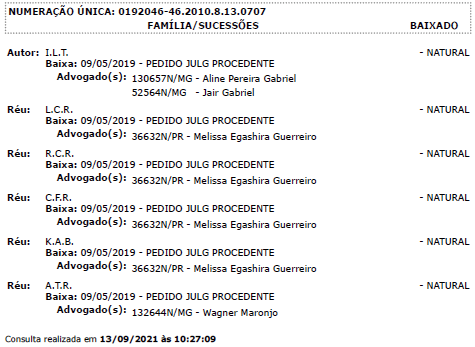 Não foi anexada aos autos cópia da ação declaratória de união estável nº 0192046-46.2010.8.13.0707, movida por ISABEL DE LOURDES TEODORO. Contudo, conforme consulta à página de consulta processual do Tribunal de Justiça de Minas Gerais, verifica-se que a autora e suas irmãs CACILDA DE FATIMA ROSA e R. D. C. R. foram partes na referida ação: