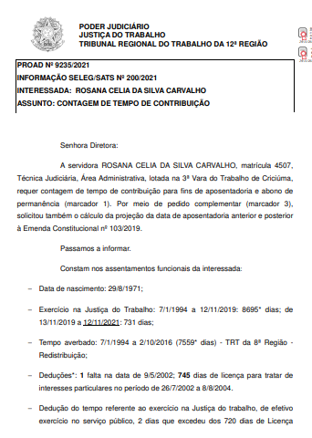 1.1. A autora é servidora pública civil federal, ocupante do cargo de Técnico Judiciário. Ingressou no serviço público junto ao Tribunal Regional do Trabalho da 9ª Região em 07/01/1994, onde permaneceu até sua redistribuição ao Tribunal Regional do Trabalho da 12ª Região em 03/10/2016. Tendo ingressado no serviço público antes da edição da EC nº 19, de 1998, consoante as regras de transição previstas no art. 3º da Emenda Constitucional nº 47/2005, encontrava-se em vias de obter sua aposentadoria, quando da edição da Emenda Constitucional nº 103, de 12.11.2019.