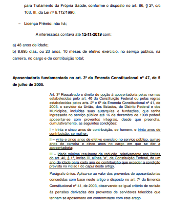 Já em conformidade com o art. 3º da subsequente Emenda Constitucional nº 47/2005, foi assegurado aos servidores públicos que tivessem ingressado no serviço público até 16/12/1998 o direito à aposentadoria integral e com paridade, uma vez atendidos os seguintes requisitos legais: