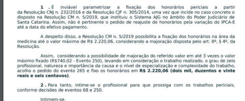 Assim, considerando que, sobre o tema, ordinariamente, tenho dito que o máximo legal pode ser ultrapassado, a fim de não inviabilizar a perícia, considerando as dificuldades para encontrar peritos na localidade e a infinidade de declinações, bem como a manifestação do perito ora designado ( (, p. 36-46), é plenamente razoável que o valor ultrapasse os limites.