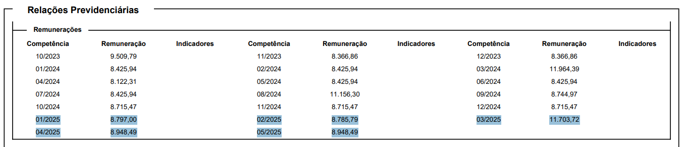 Vê-se, então, que, ao menos no ano de 2025, em que o teto previdenciário é de R$ R$ 8.157,41, apenas em março o agravante teria recebido valores superiores a esse limite.