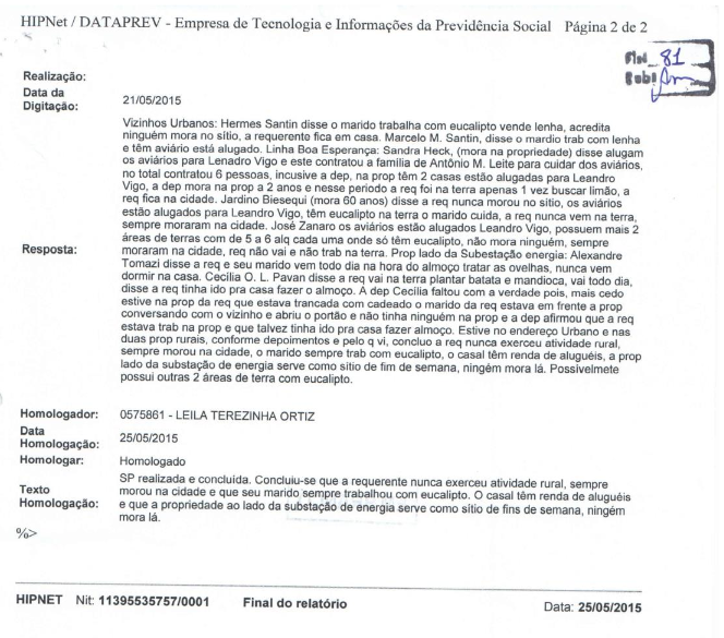 Destaco, por fim, que a prova testemunhal produzida sequer pode ser considerada, já que afirmou cultura inexistente nas atividades agrícolas da família da autora.