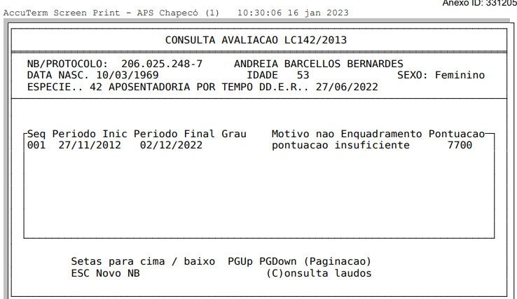 d) pontuação insuficiente para concessão do benefício quando a pontuação for maior ou igual a 7.585.