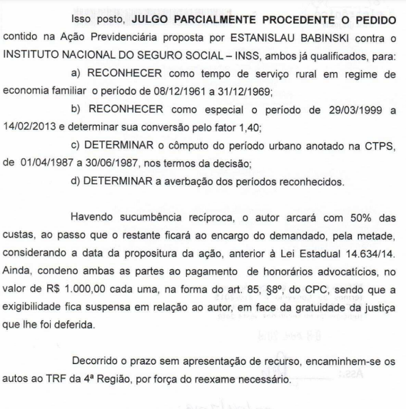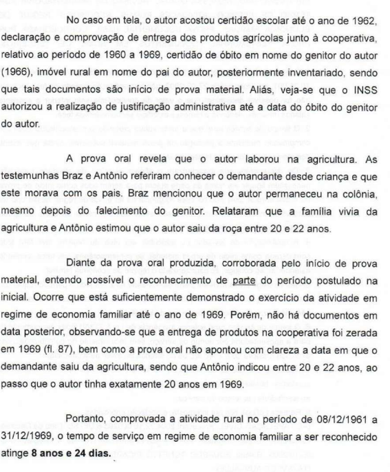 O autor, nascido em 08/12/1949, filho de Felipe Babinski e de Catarina Bielski (), buscou o reconhecimento do exercício de trabalho rural, em regime de economia familiar, no período compreendido entre 08/12/1961 a 06/08/1973. Na sentença foi reconhecido o período de 08/12/1961 a 31/12/1969, nos seguintes termos: