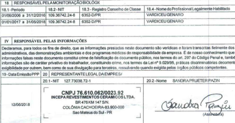 d) a partir de 1.1.2004, o Perfil Profissiográfico Previdenciário (PPP) passou a ser documento indispensável para a análise do período cuja especialidade for postulada (artigo 148 da Instrução Normativa nº 99 do INSS, publicada no DOU de 10-12-2003). Tal documento substituiu os antigos formulários (SB-40, DSS-8030, ou DIRBEN-8030) e, desde que devidamente preenchido, inclusive com a indicação dos profissionais responsáveis pelos registros ambientais e pela monitoração biológica, exime a parte da apresentação do laudo técnico em juízo.