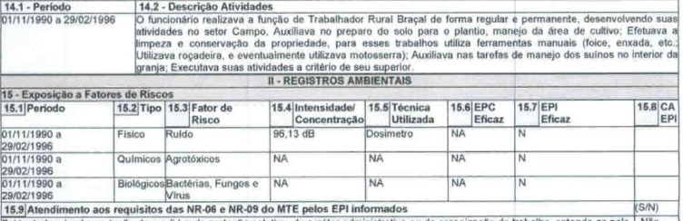 - a utilização de EPI não afasta a especialidade do labor: i) em períodos anteriores a 3.12.1998; ii) quando há enquadramento legal pela categoria profissional; iii) em relação aos agentes nocivos: ruído, biológicos, cancerígenos (como asbestos e benzeno) e periculosos (como eletricidade).