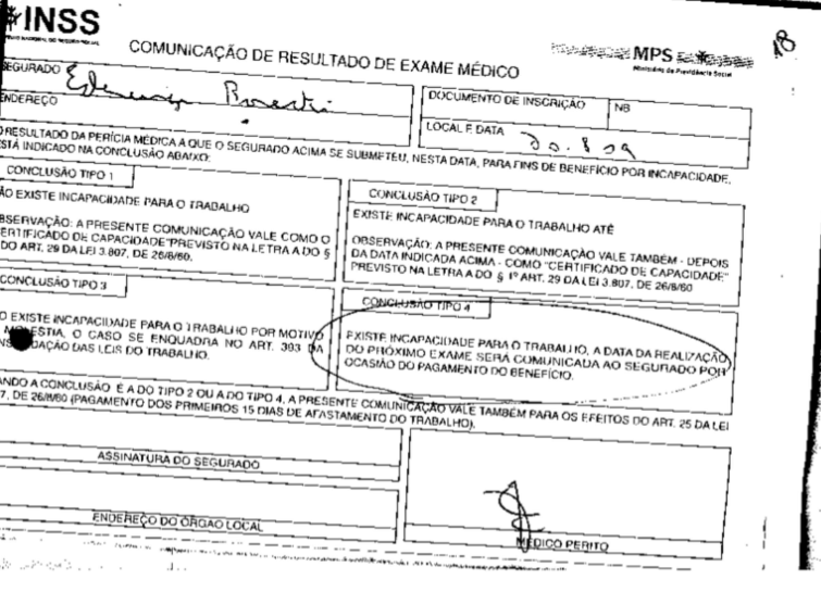 Há registro de perícia médica realizada no ano de 2009, ratificando o reconhecimento da incapacidade: