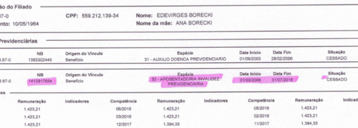 Com a inicial, a parte autora juntou extrato do CNIS, registrando a cessação do benefício em 31.07.2018 (ev. 1, out4):