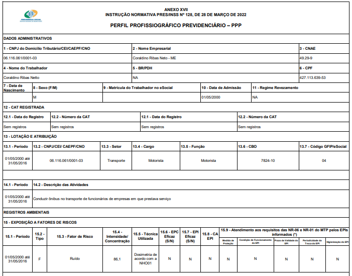 d) a partir de 1.1.2004, o Perfil Profissiográfico Previdenciário (PPP) passou a ser documento indispensável para a análise do período cuja especialidade for postulada (artigo 148 da Instrução Normativa nº 99 do INSS, publicada no DOU de 10-12-2003). Tal documento substituiu os antigos formulários (SB-40, DSS-8030, ou DIRBEN-8030) e, desde que devidamente preenchido, inclusive com a indicação dos profissionais responsáveis pelos registros ambientais e pela monitoração biológica, exime a parte da apresentação do laudo técnico em juízo.