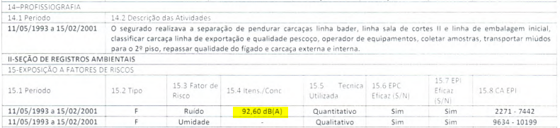 - exposição a agentes biológicos (bactérias): de 22/07/2005 a 30/11/2011 e de 01/06/2013 a 02/11/2019 (DER);