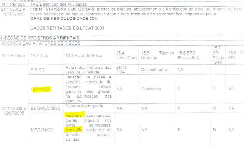O LTCAT de 2010 (fl. 19, LAUDO6, evento 1), por sua vez, confirma as informações prestadas no PPP, incluindo o enquadramento da atividade como periculosa: