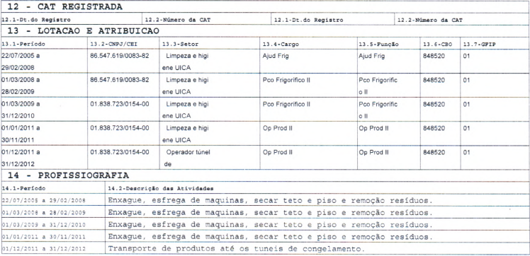 No período supra, a parte autora laborou na empresa Perdigão Agroindustrial S.A, nas funções de ajudante de produção (setor embalagem de miúdos - chiller).