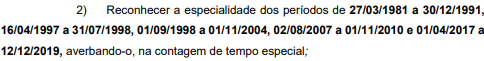 e) a partir de 14.11.2019, na vigência da Emenda Constitucional 103/2019, o tempo de trabalho em atividade especial exercido após essa data pode ser reconhecido somente para fins de concessão de aposentadoria especial, estando vedada a sua conversão em comum para outros benefícios, conforme o artigo 25, § 2º, da EC 103/2019.