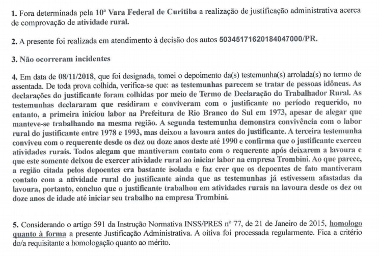 Para comprovar o tempo de serviço rural ainda foi realizada a justificação administrativa. A análise da prova testemunhal foi neste sentido: