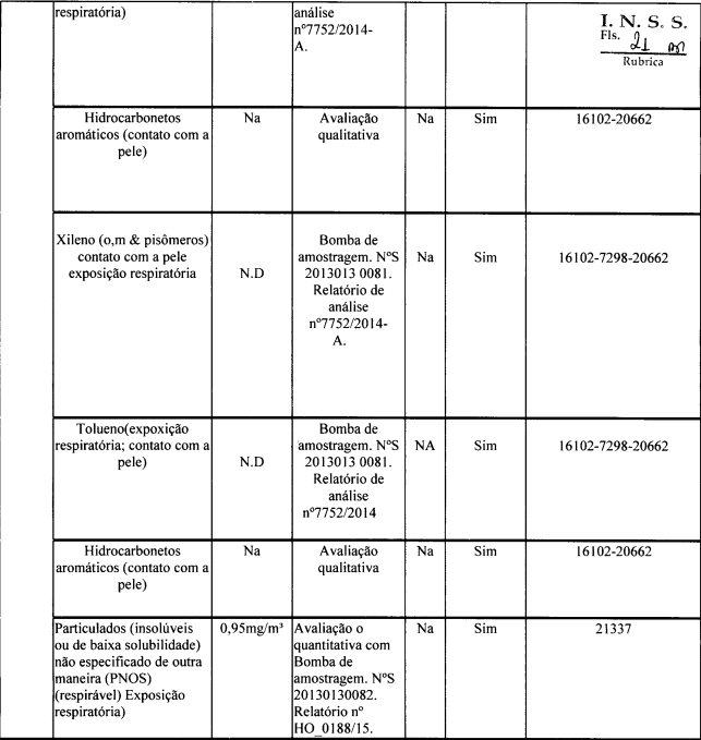 Os LTCATs (Evento 39, LAUDO2), por sua vez, registram a exposição ao(s) agente(s) nocivo(s) nos seguintes moldes: