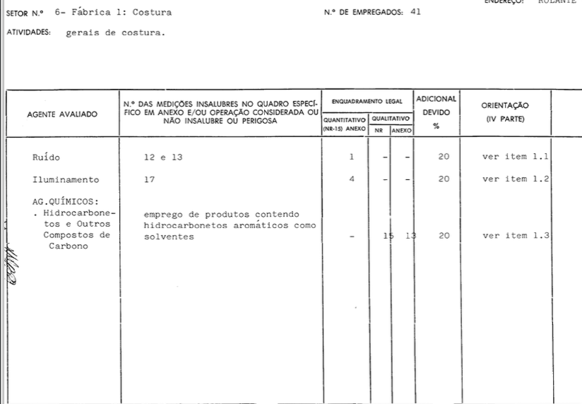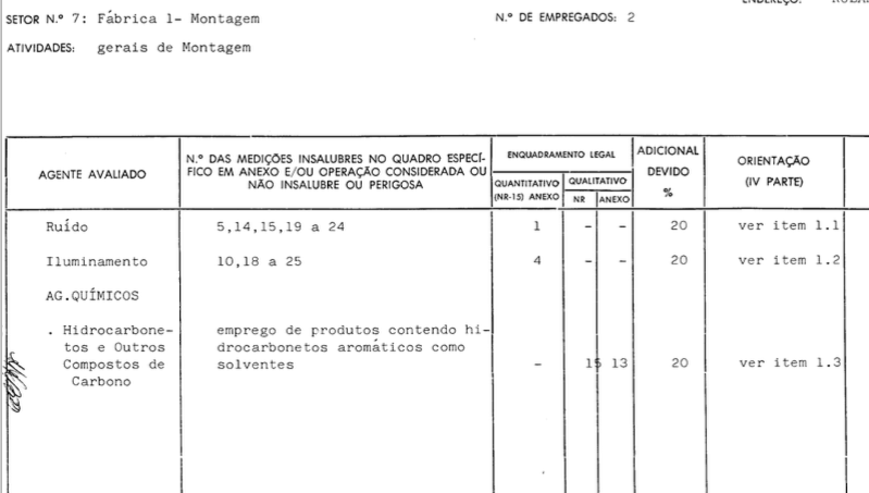 - LTCAT da empresa David Ernesto Fleck, de 1987, com os seguintes levantamentos :