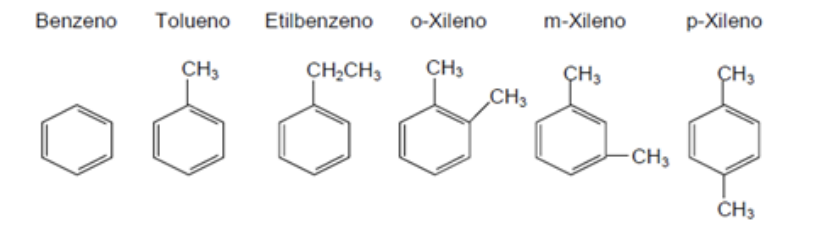Destaco, oportunamente, que o tolueno (C6H8), o etilbenzeno (C8H10) e o xileno (C6H10) são considerados hidrocarbonetos monoaromáticos, pois contém, em sua composição, um anel benzênico (C6H6). A literatura especializada destaca os compostos químicos mais comuns do grupo dos hidrocarbonetos monoaromáticos, sob a sigla BTEX (bezeno, tolueno, etilbenzeno e xileno)1: