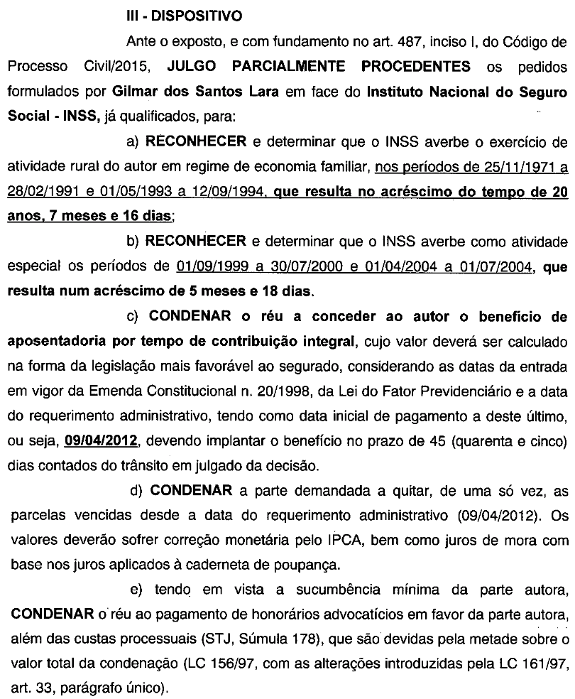 Trata-se de recursos da parte autora e da parte ré contra sentença (e. ), prolatada em 15/06/2017, que julgou parcialmente procedente o pedido de reconhecimento de labor rural de 25/11/1971 a 28/02/1991 e de 01/05/1993 a 12/09/1994, e tempo especial de 01/09/1999 a 30/07/2000 e de 01/04/2004 a 01/07/2004, com a consequente concessão do benefício de aposentadoria integral por tempo de contribuição na DER (09/04/2012), nestes termos: