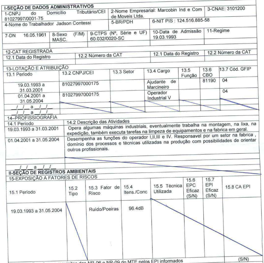 Análise judicial: Hidrocarbonetos: Incabível o enquadramento porque a atividade foi realizada a partir de 04/12/1998 e o PPP refere a existência de equipamentos de proteção eficazes, que afastam a especialidade do labor. Em que pese a possibilidade de produção de prova contrária, entendo que a impugnação genérica não tem o condão de afastar a informação de eficácia constante no formulário. Em acréscimo, a alegação genérica de que os documentos técnicos não retratam a realidade deve ser deduzida previamente e em ação própria na jurisdição competente, porque no âmbito previdenciário, quando firmados por profissionais habilitados, presumem-se verdadeiros, e dispensam, como regra, a realização de prova pericial (salvo prova conclusiva documentada de equívocos claros e manifestos - inexistente, in casu) (5001607-93.2015.404.7208, Primeira Turma Recursal de Santa Catarina, Relator Juiz Federal Edvaldo Mendes da Silva, anexado aos autos em 29/04/2016). Ruído: Incabível o enquadramento tendo em vista que a parte autora, embora intimada (evento 4), anexou cópia parcial do LTCAT, do qual não é possível extrair, em que pese a menção genérica à NR-15, a informação quanto ao critério utilizado para aferição da média do ruído, conforme Tema nº 174 da TNU. |