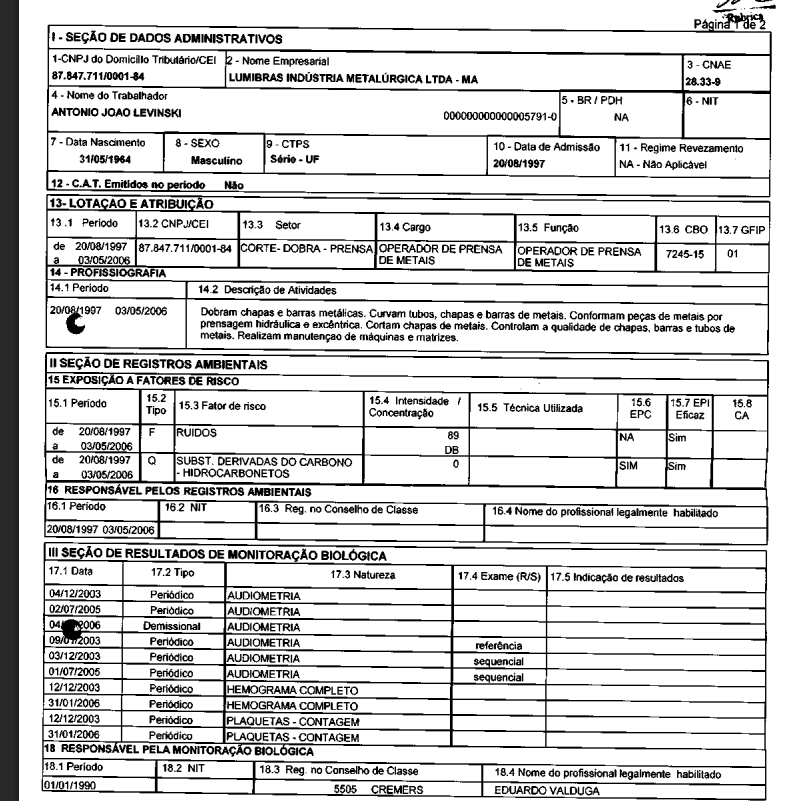 II.I. Período de 20/08/1997 a 17/11/2003 (Exposição a Ruído)
