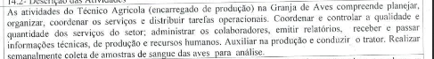 (c) 22/05/1995 a 15/09/2005: Técnico Agrícola/Setor Aves Granja/Empregador Cooperativa Tritícola Erechim.