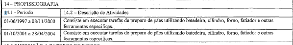Períodos de 01/06/1997 a 08/11/2000 e de 01/10/2001 a 28/04/2004 (Empresa Loreci Ãngela de Castro) e de 01/09/2005 a 09/07/2008; 01/04/2009 a 28/06/2013 (Panbelle LTDA)