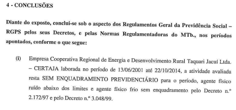 "Na situação dos autos, analisando o laudo pericial de fls. 166/171 (complementado no evento 14), nota-se que o autor desenvolveu atividade considerada como insalubre, ficando exposto a agente físico, durante o período apontado na inicial.