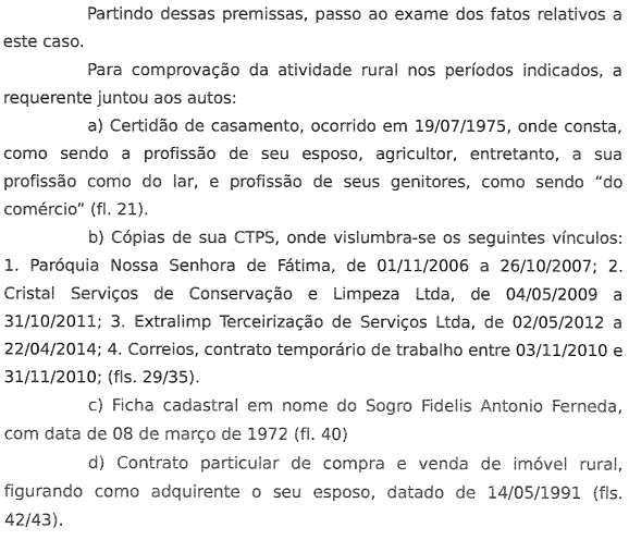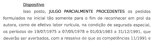 A sentença reconheceu o tempo rural de 19/07/1975 a 07/05/1978 e de 01/03/1983 а 31/12/1991, levando em consideração a prova documental somada à prova testemunhal, como segue: