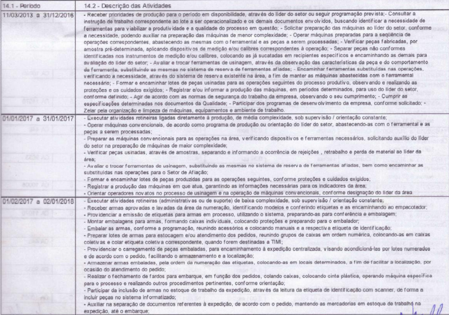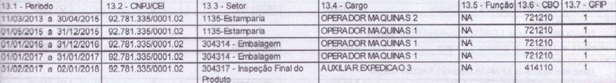 Constata-se que no intervalo de 01/01/2016 a 31/12/2016 o demandante trabalhou no cargo de operador de máquinas no setor de embalagem exercendo as mesmas atividades durante todo o intervalo entre 01/01/2016 até 31/01/2017. O PPP ( - p. 23) informa: