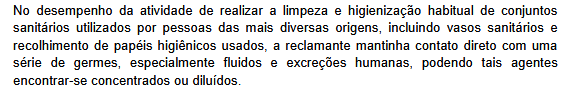 - Em que pese a higienização de banheiros públicos possa expor o trabalhador ao risco de contaminação por agentes biológicos, cuida-se de sanitário de uma empresa de porte pequeno/médio, de uso interno apenas dos trabalhadores, de forma que não há acentuado risco de contaminação.