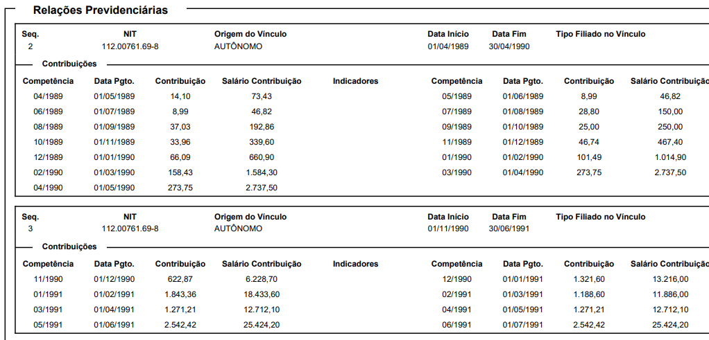 Conforme , na época, o autor contribuía como autônomo: