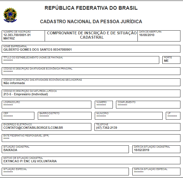 Ademais, cumpre destacar que a referida empresa encontra-se, atualmente, baixada, conforme consulta ao site da Receita Federal:
