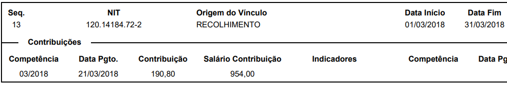 O CNIS (, p. 9) revela que houve recolhimento previdenciário na competência de 03/2018: