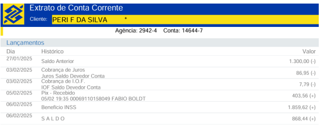 Observa-se, ainda, que mesmo com auxílio de um dos filhos, a conta bancária do marido da autora encontra-se com saldo negativo, implicando no pagamento de juros, o que demonstra que a renda da família se mostra insuficiente para a subsistência do casal: