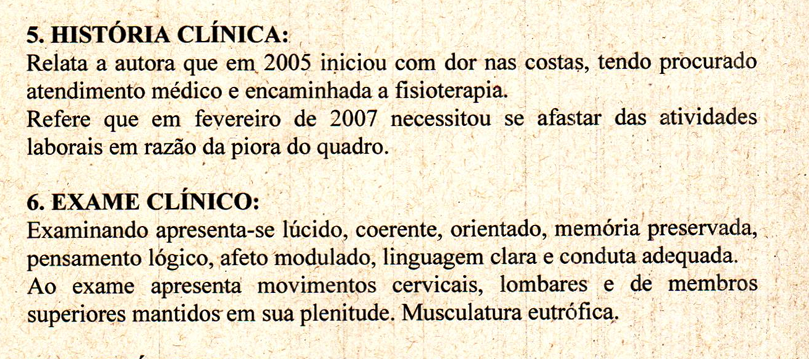 A íntegra dos exames realizados pelo perito foram assim relatados: