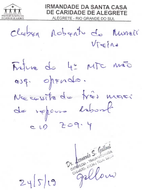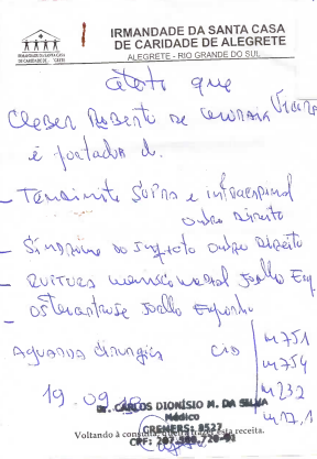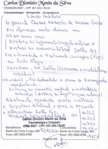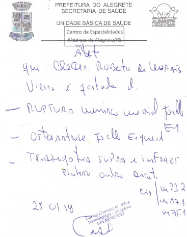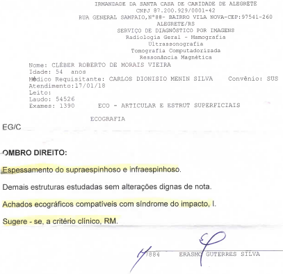 Para comprovar suas alegações, juntou aos autos documentação clínica, da qual destaco (; ; , fls. 8-9; ):