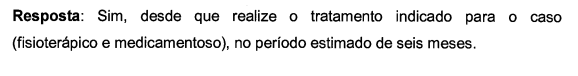 No 4º quesito assevera que a incapacidade é parcial e temporária. Por fim, no 5º quesito refere que o autor pode restabelecer a capacidade laboral, desde que realize o tratamento indicado para o caso (fisioterápico e medicamentoso), no período estimado de seis meses.