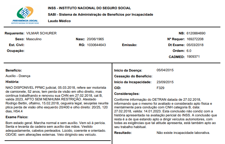Em laudo administrativo realizado pelo INSS em 05/03/2018, verifica-se a utilização de fundamentos rasos para alta médica, pois a autarquia baseou-se unicamente no fato de ter ocorrido a renovação da carteira nacional de habilitação do autor, sem qualquer avaliação física.