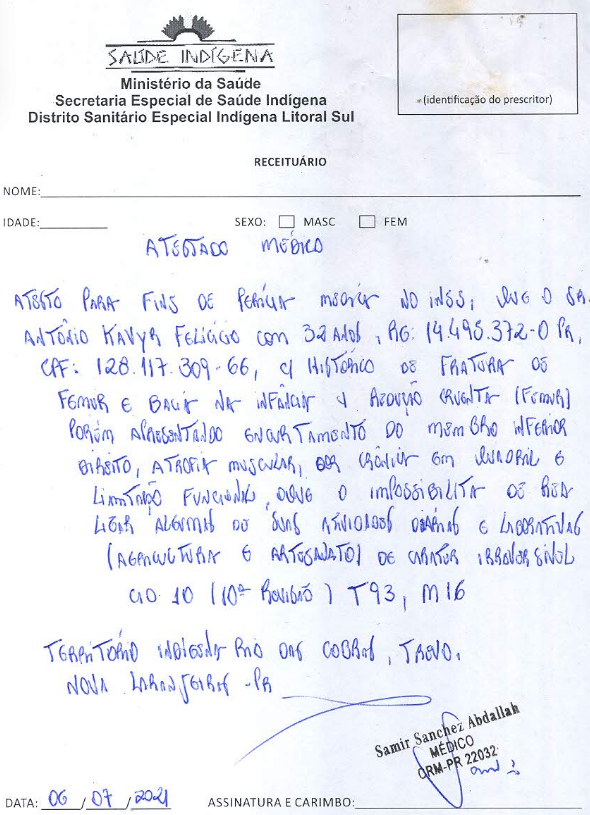 Por fim, observa-se que à inicial foi juntado somente um atestado médico datado de 06/07/2021, o qual confirma que o autor apenas alguma limitação em razão de sequela decorrente de lesão ocorrida na infância: