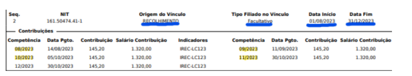 de 27/06/2017 a 17/01/2019 | 6 (seis) contribuições | 5 (cinco) contribuições | Isento |