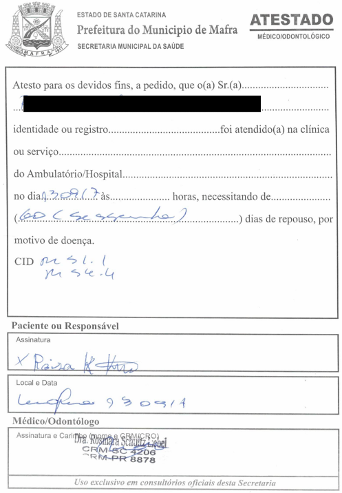 b) atestado médico emitido em 13-09-2017 (e. , p. 1);