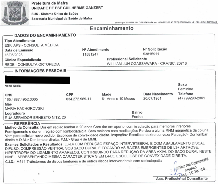 - Justificativa: exame físico sem clínica de radiculopatia lombar