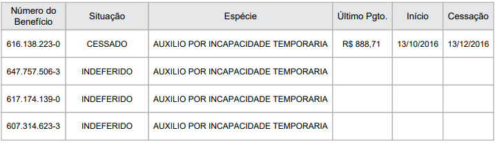 No caso concreto, por ocasião do ajuizamento da presente ação, a parte autora apresentava os seguintes benefícios em seu nome (e. ):