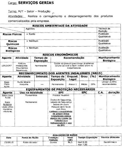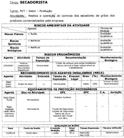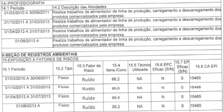 Ainda, o LTCAT da empresa corrobora as informações de que o agente ruído encontrava-se abaixo dos limites estipulados para o lapso.