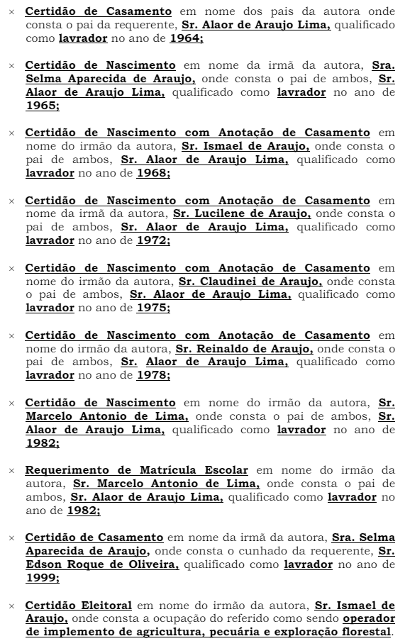 Para comprovar o trabalho rural no período controverso, a parte autora apresentou os seguintes documentos ao formular o pedido administrativo, cuja relação foi descrita na inicial da seguinte forma:
