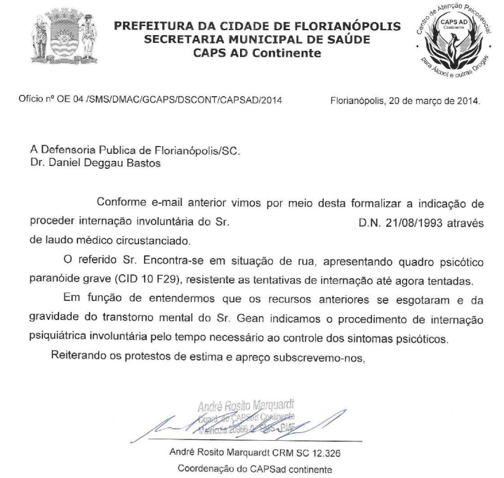 - O(a) examinado(a) apresenta transtorno relacionado ao uso de substância(s) psicoativa(s) (ébrio habitual e/ou viciado em drogas ilícitas) ou está impossibilitado de exprimir sua vontade em razão de causa transitória ou permanente? SIM