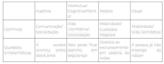 A primeira é quando houver resposta afirmativa para uma questão emblemática, ou seja, quando houver positividade de uma questão pré-definida conforme o tipo de deficiência. Saliento que as questões emblemáticas de cada tipo de deficiência são: