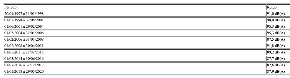 - De 6-3-1997 a 6-5-1999: Anexo IV do Decreto nº 2.172/97 (superior a 90 dB)
