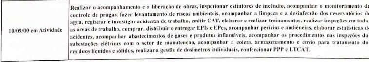 O PPP registrado, ainda, indica a exposição a agentes biológicos a contar de 14/10/2002. Todavia, considerando que já em 10/09/2000 a parte autora iniciou o desempenho das atividades inerentes ao cargo de técnico de segurança do trabalho, não havendo qualquer registro de alteração de cargo ou atribuições, é possível o reconhecimento da natureza especial de todo o período de 10/09/2000 a 02/12/2021.